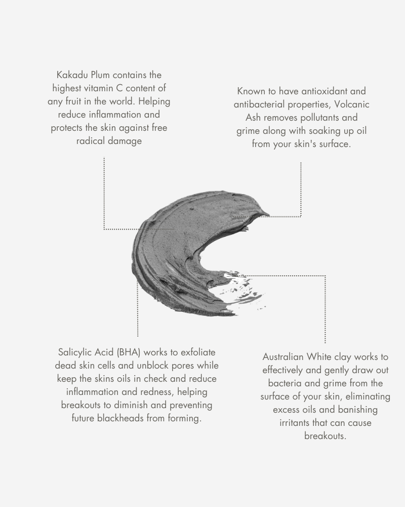 Deep pore penetration to draw out and dissolve bacteria and excess oil, nourishes the skin, clears and help to prevents breakouts.